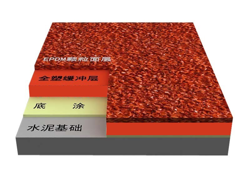 全塑型塑膠跑道其外觀表面為顆粒狀結構,非滲水性。主要材料是雙組份聚氨酯,基礎層為天然橡膠及人工橡膠,混合礦物質填充劑、穩(wěn)定劑及色料在280-300℃的高溫加硫硬化一體成型,并以運動生物力學為依據(jù),讓運動過程中產生源源不斷地動能,能更好地避免運動受傷,并達到國際田聯(lián)新頒布的沖擊吸收率的達標要求35%~50%。
